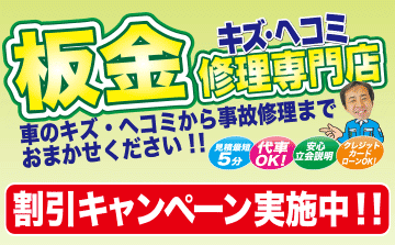 板金塗装最新ブース設置 自社工場にてキズヘコミ修理致します